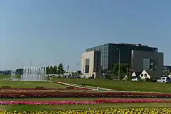 In 1913 the library with its approximately 110,000 volumes moved from the building of the present-day Rector's Office into an impressive Art Nouveau edifice located in 21 Marko Marulić Square, the first building built specifically for the purposes of the library. As it was designed to house 500,000 volumes, its premises soon become inadequate for the library's 2,500,000 volumes – books, journals, newspapers and the particularly valuable items of the library's special collections.[6] A new library building, the Pantheon of the Croatian Book, was commissioned: its foundation stone was laid in 1988 and the building opened on 28 May 1995 as part of the celebration of the fifth anniversary of Croatia's independence. This modern edifice was designed by Croatian architects Velimir Neidhardt, Marijan Hržić, Zvonimir Krznarić and Davor Mance.[6]
