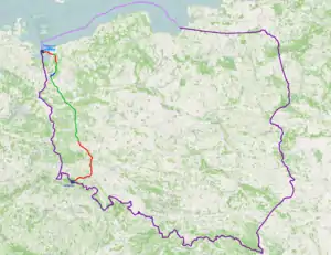 National road 3 (Polish: Droga krajowa nr 3) is a route belonging to the Polish national road network. The highway connects the northwestern and southwestern regions of Poland, running from Świnoujście at the German border to Jakuszyce at the Czech border, traversing through the West Pomeranian, Lubusz and Lower Silesian voivodeships. National road 3 is a component of European highway E65.