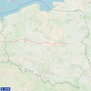 National road 92 (Polish: droga krajowa 92)[1] is a route belonging to Polish national roads network, which serves as an alternative route parallel to motorway A2. The road has one lane per direction on the majority of its length. Before the A2 motorway was constructed, it had served as the main connection between Warsaw, Poznań and the Polish-German border as national road 2.