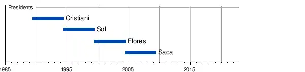 ARENA controlled the National Assembly of El Salvador until 1985, and its party leader Alfredo Cristiani was elected to the presidency in 1989. ARENA controlled the presidency from 1989 until 2009. The party gained a plurality in the Legislative Assembly in 2012.