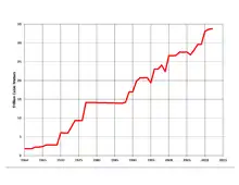 Iran plans to invest $15 billion a year to expand its annual gas output capacity to 300 billion cubic metres (11 trillion cubic feet) by 2014, from 170 billion in 2009.[28] It will invest $50 billion from 2010 until 2020 on LNG projects. Iran plans to export 8 million tons of LNG by 2012. The country also aims to increase natural gas exports by fivefold to 60 billion cubic metres (2.1 trillion cubic feet) a year by 2014.[28] Global gas demand is projected to rise between 2 percent and 3 percent a year for the next 20 to 25 years, with India and China the main markets for Iran's gas exports.[29]