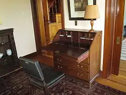 The Kiplings, while on their honeymoon in 1892, visited Caroline Starr Balestier Kipling's parents in nearby Brattleboro. Taken by the countryside, the couple purchased this property from Caroline's brother, and had the house built on it in 1893 to a design by Henry Rutgers Marshall, with significant input from Kipling. In 1894, Arthur Conan Doyle visited Kipling at Naulakha, where the two played golf together.[7] The Kiplings lived here until 1896, when a dispute with a hot-tempered neighbor (his brother-in-law Beatty Balestier) led to court proceedings and an avalanche of unwelcome publicity. The Kiplings attempted to return in 1899, but illness on the sea crossing from England frustrated the plan. The property was owned for much of the 20th century by members of the Holbrook family, who in 1992 sold it to the Landmark Trust,[1] a preservation organization that restores historic properties and makes them available to the public. The property has largely been restored to its appearance as of the Kiplings’ ownership, and includes artifacts belonging to the family.
