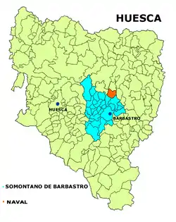 Naval is a municipality located in the province of Huesca, Aragon, Spain. According to the 2018 census (INE), the municipality has a population of 269 inhabitants.