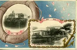 ![]() Commemorative postcard showing Naval Museum (left) and Naval War College (right), circa 1900 | |
