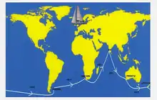 Navika Sagar Parikrama (lit. 'Sailors' Sea Circumambulation') was a circumnavigation of the globe by female officers of the Indian Navy. The six-member all-woman team circumnavigated and managed the whole operation in their first-ever global journey, on INSV Tarini. The voyage lasted 254 days, from 10 September 2017 to 21 May 2018, with only 4 port calls, in Fremantle, Australia; Lyttelton, New Zealand; Port Stanley, Falkland Islands; and Cape Town, South Africa, and a forced technical halt at Port Louis, Mauritius, crossing the equator twice and passing through 3 oceans.[1][2] The voyage was originally set to start on September 5, 2017, but a 5-day delay happened so that Nirmala Sitharaman, who was recently appointed defense minister, could flag off the crew.[3] The boat returned to INS Mandovi in Goa after travelling 21,600 nautical miles (40,000 km; 24,900 mi).[4] The voyage was showcased in Tarini, a documentary jointly produced by National Geographic and the Indian Navy, premiering at an event at Lady Shri Ram College on 8 March to mark International Women's Day.[5] The voyage prompted National Geographic to start the "Girls Who Sailed" campaign, to tell tales of "grit and determination".[6]