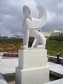 Numerous practical and artistic deployments of Naxian marble can be found on the island. These include a modern Sphinx statue in front of the city council building of the city of Naxos, the remains of the Temple of Demeter at Sangri, the Portara (the emblem of Naxos) and many masonry constructions in the villages.