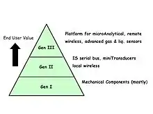 The NeSSI Technology Development Roadmap groups the technology into three generations which are backward compatible. Generation I is a commercial product and proven in numerous industrial and laboratory applications. Generation II products have been proven in the laboratory but have yet to be commercialized. Generation III (microAnalytical) is in development.