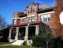 The Bryden Road District was established as a local historic district in 1990.[13] It was initially met with apprehension, for fear of certain historical aspects being erased from the area.[14] The Bryden Road District is subject to architectural review by the City of Columbus Historic Resources Commission. Bryden Road was renamed in order to thwart the expansion of the streetcar through the neighborhood; on one side it is Town Street and on the other side of Parsons Ave it is Bryden Road. The Bryden Road District runs east-west through both the Franklin Park and Olde Towne East neighborhoods. The area once was referred to as the "Silk Stocking District" because of the display of prosperity and opulence. More than 50 architectural styles can be found along Bryden Road, including French, German and Renaissance influence.[15]
