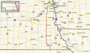 | Douglas | Omaha | 91.45 | 147.17 | Northern terminus | |