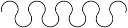 A nebuly line can be constructed from two parallel rows of circles, one row staggered with respect to the other, so that each circle is tangent to two circles in the other row. Each circle in the lower row should touch the two above at about 45 and 135 degrees and each circle in the upper row should touch the two below at 225 and 315 degrees.