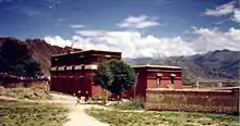 It is about 10 minutes walk down from Drepung Monastery, and was the residence of the three-headed, six-armed Pehar, the chief protector of the Gelugs (Yellow Hat sect) and the seat of the State Oracle or Nechung Oracle.[2] It is a medium-sized temple which used to house about a hundred monks.[3]