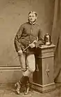 To settle the score with Wright over the chestnut mare, Kelly fought him in a bare-knuckle boxing match at the Imperial Hotel in Beechworth, 8 August 1874. Kelly won after 20 rounds and was declared the unofficial boxing champion of the district.[7] Soon afterwards, a Melbourne photographer took a portrait of Kelly in a boxing pose. Wright became an ardent supporter of Kelly.[27]