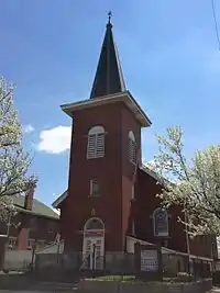 German Village is a historic neighborhood just south of downtown. It was settled by a large number of German immigrants in the mid-19th century, who at one time constituted as much as a third of the population of the entire city. It has a commercial strip mainly centered along South Third Street, with mostly locally owned restaurants, as well as the tall-steepled St. Mary Catholic Church. The area is mostly a residential neighborhood of sturdy, red-brick homes with wrought iron fences along tree-lined, brick-paved streets. At the southern end, Schiller Park, named after Friedrich von Schiller, was once a community meeting ground for the German settlement. It is now the site of recreational facilities, gardens and an amphitheater, which hosts free live performances of Shakespearean plays during the summer months courtesy of the Actor's Theatre.