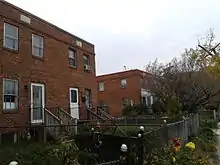 Parker-Gray was primarily rural for much of the eighteenth century; one of the few structures which stood there was the powder magazine for the city of Alexandria, built far away from the center of town as a potential fire hazard;[49] this was demolished around 1818 as more buildings began to be constructed in its vicinity.[54] A handful of houses were built at the beginning of the nineteenth century. The most prominent of these was Colross, which has since been moved to Princeton, New Jersey; no trace of it, or any of the other houses, remains visible.[54] Railroad tracks had been laid through the neighborhood by the time of the American Civil War, during which the Union Army made use of many vacant sites for a variety of purposes. No trace of these remains, either.[54] During and after the war what is today Parker-Gray became a haven for freed blacks and escaped slaves. By the middle of the twentieth century it had become a well-respected middle-class neighborhood. Samuel Wilbert Tucker led a sit-in at the Kate Waller Barrett Library in the neighborhood in August 1939;[49] Tucker's house still stands in the district.[55] More recently, a large new public housing development was built in the neighborhood in 1988.[54] Parker-Gray saw much growth beginning in the mid-1980s; many of the newer buildings were constructed in a style which blends in with the older structures which surround them.[54]