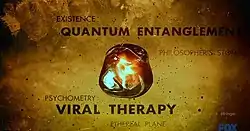 ![]() The new amber-tinted title sequence, featuring new terms such as 'Viral therapy', 'Philosopher's stone', and 'Existence' | |