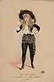 Farren's Gaiety pieces in the 1880s included Lutz and Robert Reece's burlesques of The Forty Thieves (1880), as Ganem; the title roles in Aladdin (1881) and Little Robin Hood (1882);[8] Ariel (1883, by F. C. Burnand, based on The Tempest);[16][17] Blue Beard (1882); Camaralzaman and Mazeppa (1884); perhaps her most famous role as Little Jack Sheppard (1885); Richard Henry's Monte Cristo Jr., as Edmond Dantes (1886); Dr. Frankenstein in Frankenstein, or The Vampire's Victim (1887); Miss Esmeralda, or The Maid and the Monkey (1887); Fra Diavolo, Gulliver, Rip Van Winkle, Sonnambula; the title role in Cinder Ellen up too Late (1891); and dozens of others.[18] Perhaps the most successful of her later roles was the title role in Ruy Blas and the Blasé Roué (1889, by Fred Leslie and H. F. Clarke, a take-off of Victor Hugo's play Ruy Blas),[8] which she and Fred Leslie toured in Australia (with Sidney Jones) and elsewhere in 1891. In 1888–89, she, Leslie, Letty Lind, Sylvia Grey, Marion Hood and the Gaiety company had toured the US and Australia with Monte Christo, Jr. and Miss Esmeralda.[19]