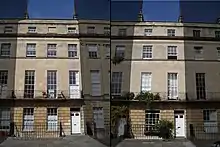 Nelson Place West is a Grade II listed Georgian terrace of houses in Bath, Somerset, England. It was built as "Nelson Place" in the early 19th century, and the suffix "West" was added to avoid confusion with Nelson Place East on the other side of the city. The end houses (Nos. 1 and 9) have Ionic pilasters and there is a wrought iron balcony on the second floor of Nos. 2–8.[1] These features match the adjacent Norfolk Crescent, which was built as part of the same urban development.