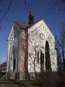 The Neogothic chapel in Mošovce, Slovakia was constructed in 1911 by Count Ferenc Révay as a Mausoleum. The upper part of this neogothic building was used as a chapel and the lower as a crypt. Its exterior features a wide range of neogothic components. The interior presently hosts the Museum of Mošovce Crafts. Its exhibition includes tools used in the manufacture of well-known Mošovce products. The Chapel is situated in the west corner of a park, which was also established by Count Révay. Rarities in the park include the exotic chestnut and ginkgo trees.