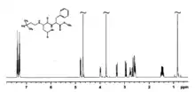 Neotame NMR spectroscopy identifies its structure with a peak at 0.84 ppm indicating the three methyl groups on the carbon chain bonded to the nitrogen.[12]