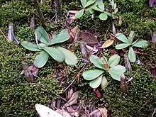 Rosette and lower pitchers are ovoid in the lower third and cylindrical above. They are small, reaching only 10 cm in height and 2.5 cm in width. A pair of fringed wings (≤3 mm wide) runs down the front of terrestrial pitchers. The glandular region covers only the lower third of the inner pitcher surface. The pitcher mouth is round and slightly oblique throughout. The cylindrical peristome is up to 2 mm wide and bears indistinct teeth.[3] The peristome is roughly symmetrical in cross section, with the inner portion accounting for around 54% of its total cross-sectional surface length.[6] The lid or operculum is orbicular and cordate at the base. Multicellular hairs are sometimes present on its upper surface. An unbranched spur (≤2 mm long) is inserted at the base of the lid.[3]