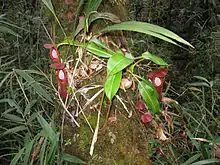 Anthea Phillipps and Anthony Lamb note that plants growing in the Racemobambos bamboo forest on Mount Tambuyukon produce some of the longest and finest pitchers, having a pronounced waist and ranging in colour from pink to reddish-orange.[4] On the Marai Parai plateau of Mount Kinabalu, N. edwardsiana grows amongst shrubs up to 5 m high. Pitchers on these plants rarely exceed 30 cm.[36] The species does not grow along the Kinabalu summit trail and so very few visitors to the park manage to see it.[34] A specimen is kept at the "Mountain Garden" near Kinabalu Park Headquarters.[40][41]