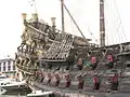 The Neptune is a ship replica of a 17th-century Spanish galleon designed by Naval Architect David Cannell of www.dmcmarine.com. The ship was built in 1985 for Roman Polanski's film Pirates, where she portrayed the Spanish ship of the same name. An accurate replica above the waterline, but sporting a partly steel hull, planked in timber and two main engines with Schottel drive, the Neptune is currently a tourist attraction in the port of Genoa, where its interior can be visited for a 9 euro entry fee.[1] In 2011, she portrayed the Jolly Roger, the ship of Captain Hook, in the TV miniseries Neverland.[2]