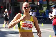 Neringa Aidietytė (born 5 June 1983) is a Lithuanian racewalker, who competes in the 20 km walking event. Her personal record is 1:29:01, reached in 2014. She represented Lithuania at the 2010 and 2014 European Championships in Athletics, 2011 and 2013 World Championship in Athletics and the 2012 London Olympic Games.