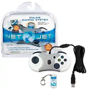 The Net Jet makes itself plug n play by containing a small bit of firmware in the controller. When plugged in, a virtual CD-ROM image (400K in size) would automatically mount, then proceed to download and install its software via the Internet so to display a menu selection screen. Any games selected would then also need to be downloaded and stored on the computer. The Net Jet is a proprietary controller, it can only be used for its own games and not as a standard PC gamepad controller (it was detected as a USB hub, as opposed to a game controller by the computer). The controller itself had 7 buttons (two shoulder, four front and one 'start'), d-pad and analog thumb stick.