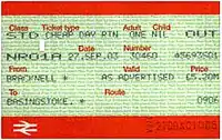 {{cite journal}}: Missing or empty|title=(help) - "ATOC National Fares Manual: Section F (Discounted Travel)" (PDF). Archived from the original (PDF) on 28 September 2007.