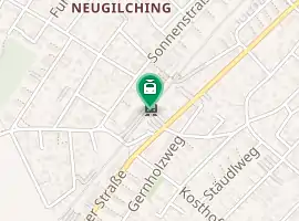 The Neugilching stop went into operation on 1 May 1972 shortly before the start of the S-Bahn operation as a replacement for the Weichselbaum stop, which was closed at the same time.[4] The unoccupied Haltepunkt is located in the centre of the Gilching district of Neugilching and was initially equipped with an side platform. With the double-track line extension, Deutsche Bundesbahn built a second side platform by 1985.[5]