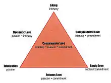 Known as the insecure feeling of a partner in regards to losing their loved one to another, jealousy can result in extreme situations such as violence and abuse from the insecure partner to their beloved.[19] In one study, men and women were shown sentences that suggested sexual and emotional infidelity and rated the intensity of jealousy that they felt.[19]