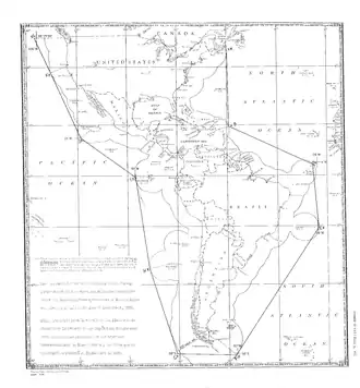 On 4 September 1939, the Chief of Naval Operations (CNO) ordered the Atlantic Squadron[4] to establish a combined air and ship patrol to observe and report the movements of ships of warring nations within a line extending east from Boston to 65 degrees west and thence south to the 19th parallel and seaward around the Leeward and Windward Islands.[1] The concept of a naval Neutrality Patrol within that zone was presented to a Conference of Foreign Ministers of the American Republics convened in Panama on 25 September. After considerable debate, the conference agreed the Declaration of Panama on 2 October 1939, to extend the neutrality zone southwesterly parallel to the northeastern coast of South America approximately 300 miles (480 km) offshore.[4][5]