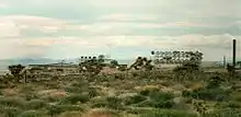 | Apple-2 houses | Area 1 37.04434°N 116.07397°W | Three "typical American" houses built for the Apple-2 civil defense event. The one on the left is 1.5 miles (2.4 km) from the 29kt blast, the right one 2 miles (3.2 km). The left one is on the monthly tour bus route. The two towers are from later seismic studies. |
