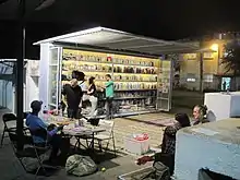 Located in Levinsky Park, the Garden Library consists of two open-air bookshelves (one for adults and one for children).[11] The library services the whole community, but was originally designed with the refugee and migrant population in mind. The library was established in 2009 by the non-governmental organization ARTEAM.[12] In addition to the free books, the library space also offers after school programs for children,[12] art classes and workshops, and language lessons[11] The library offers approximately 3,500 books in 16 different languages.[12] It is located at 98 Lewinsky St. (corner of Lewinsky & Har Zion).[13] The bookshelves are illuminated for easier browsing at night.[11]