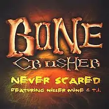"Never Scared" is a song by American hip hop recording artist Bone Crusher, released as his debut single and the lead single from his debut album, AttenCHUN!. The song was produced by Avery Johnson and features verses from fellow Atlanta-based rappers Killer Mike and T.I. The song became a Top 40 hit, reaching number 26 on the US Billboard Hot 100 chart, while also reaching the top 10 of the Billboard Hot R&B Hip-Hop and Rap charts. The success of the single propelled AttenCHUN! to reach number one on the Top R&B/Hip-Hop Albums, although Bone Crusher's success would be short-lived as "Never Scared" would be his only charting single. The song, however, was only the first of many future hit singles for T.I.