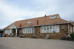 The New Blaine School is a historic school building at the junction of Arkansas Highway 22 and Spring Road in New Blaine, Arkansas. It is a single story masonry structure, built of coursed stone and covered by a complex gable-on-hip roof with triangular dormers. Its entrances are sheltered by Craftsman-style gabled porticos, supported by tapered square posts set on stone piers. It was built in 1925 by a local contractor to replace an older school.[2]