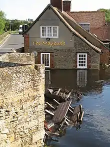 Whether New Bridge or Radcot Bridge is the oldest bridge today across the Thames is debatable – Radcot Bridge was built earlier but was extensively damaged during the Wars of the Roses and had to be greatly rebuilt; furthermore, Radcot Bridge no longer crosses the main channel of the river since local reroutings in 1787.[3] In 1644, in the Civil War, the Battle of Newbridge was fought on the banks of the river. Parliamentarian William Waller attempted to cross in order to surround Oxford and capture King Charles, but was defeated.[5][6] In 2007 the area was flooded extensively.[7]