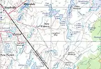 Some maps have New France incorrectly placed about 2 miles (3 km) to the west of its actual location, on a road that may not be passable.