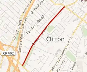 The entire route is in Clifton, Passaic County.