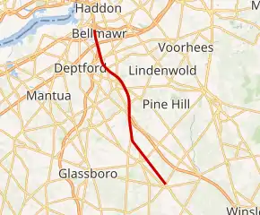 Route 42 is a state highway in the U.S. state of New Jersey within the Camden area. It runs 14.28 mi (22.98 km) from an intersection with U.S. Route 322 and County Route 536 Spur in Monroe Township, Gloucester County to an intersection with Interstate 76 and Interstate 295 in Bellmawr, Camden County. The route is a mix of freeway and divided four-lane arterial road. The southern portion of Route 42 is a local arterial route and one of several highways comprising the Black Horse Pike, a road that runs from Camden to Atlantic City. The northern portion is part of a six- to eight-lane freeway referred to locally as the North–South Freeway (or simply the 42 Freeway[2]) that connects the Atlantic City Expressway to the Benjamin Franklin Bridge (via I-76 and I-676). Major intersections along the route include the Atlantic City Expressway and the southern terminus of Route 168 in Turnersville, another intersection with Route 168 in Blackwood, and Route 41 and Route 55 in Deptford Township.