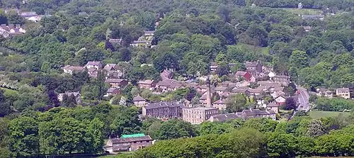 New Mill, West Yorkshire, England, is a small, semi-rural village near the town of Holmfirth. It is in the metropolitan borough of Kirklees and the civil parish of Holme Valley. The village had a population of 1,259 (with Fulstone) in the 2001 census. The village is 2 miles (3.2 km) east of Holmfirth and 6 miles (9.7 km) south of Huddersfield.[1]