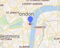 New Scotland Yard, formerly known as the Curtis Green Building and before that as Whitehall Police Station,[1] is a building in Westminster, London. Since November 2016, it has been the Scotland Yard headquarters of the Metropolitan Police Service (MPS), the fourth such premises since the force's foundation in 1829. It is located on the Victoria Embankment and is situated within the Whitehall Conservation Area. It neighbours the Norman Shaw (which were the predecessor New Scotland Yard buildings) and Ministry of Defence buildings, together with Richmond House and Portcullis House.