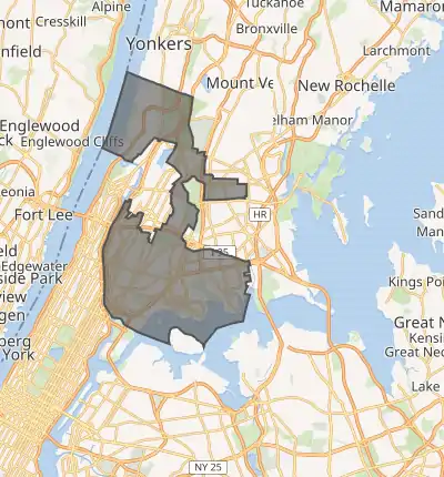 The 15th district is located entirely within the Bronx, namely the southern portion of the West Bronx as well as the South Bronx. Latinos make up the majority of the district's population, followed by Black people. Whites, Asians and other racial groups comprise a small minority. Yankee Stadium and the Bronx Zoo are both located within the district.