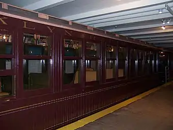 A few specialized railwork vehicles formerly used for maintenance are also usually on view. In addition to the operational rolling stock, there is a large wheel truck and motor (bogie) on display on the platform itself, along with a series of informational panels showing the development of New York City's rail transit systems.