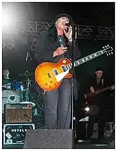 As early as 1973, critics including Nick Kent and Dave Marsh were using the term "new wave" to classify New-York-based groups such as the Velvet Underground and New York Dolls.[39] In the US, many of the first new wave groups were the not-so-punk acts associated with CBGB (e.g. Talking Heads, Mink DeVille and Blondie),[24] as well as the proto-punk scene in Ohio, which included Devo, the electric eels, Rocket from the Tombs, and Pere Ubu.[40][41] Some important bands, such as Suicide and the Modern Lovers, debuted even earlier.[42] CBGB owner Hilly Kristal, referring to the first show by Television at his club in March 1974, said; "I think of that as the beginning of new wave".[43] Many artists who would have originally been classified as punk were also termed new wave. A 1977 Phonogram Records compilation album of the same name (New Wave) includes American artists Dead Boys, Ramones, Talking Heads, and The Runaways.[24][44]