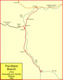 A branch line was built to reach lead mines around Alston, opening from Haltwhistle in 1852.