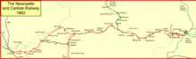 The N&CR was absorbed by the larger North Eastern Railway in 1862. Today the Tyne Valley Line follows much of the former N&CR route between the two cities, but the Alston branch has closed.