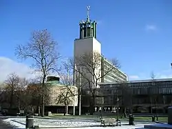 Plans to build a new city hall[6] on the site at Barras Bridge had been proposed prior to the outbreak of the Second World War, to the point of holding an architectural competition, although these were halted by the war;[7] and due to post-war restrictions on capital expenditure, it was not until August 1956 that authorisation to begin construction was granted. During the interim period, the demolition of houses and a former Eye Hospital on the intended site was implemented.[3] The building was designed by the city architect, George Kenyon.[2]