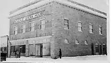 Sam and Fred Schwendiman incorporated the Newdale Investment Company for commercial purposes, which erected a rock building that housed, on the ground floor, a hardware supply and drug store. The other part of the building was leased to the First National Bank of Newdale, an independent bank managed by G.C. Alden. Upstairs, a fine recreation hall was completed for dancing, with a stage where operettas and drama productions could be given. The facility formally opened in June 1915 and attracted considerable attention at the time. A train depot was also built in 1915, and catered to both freight and passenger service. Later that summer, in August, a group of men representing the Chamber of Commerce came to Newdale by train and were entertained at this community center before making the loop back to Idaho Falls.
