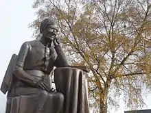 The campus has a number of artworks. A piece entitled 'The Globe', designed by Planet Art in nearby West Bromwich, was installed outside of the new library building in May 2012. 'The Globe' includes quotations from John Henry Newman on faithfulness and commitment.[34] A statue of John Henry Newman, designed and created by Tim Tolkien, is in the Ryland Quad of the campus.[35]